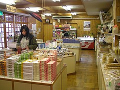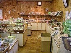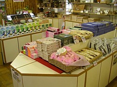 土産物の「山幸彦」は9時〜18時(12月〜3月は17時まで)、柿の葉寿司や川魚が豊富だけど特に珍しい品は見当たらない。 |
