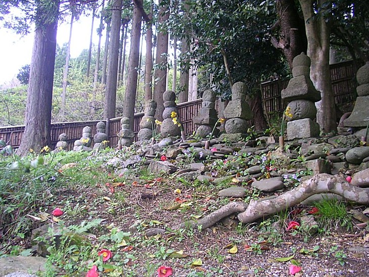 国道沿いの駐車場から下った平地が時忠の住居跡と伝わる。「烏に導かれて川の上流の則貞へ」の地だ。