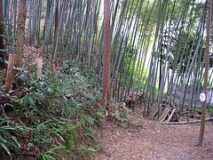 山側に伸びている細道はあまり快適ではない。敷地の下は岩磯だが200mほど向って右手に歩くと水遊び向きの砂浜がある。 |