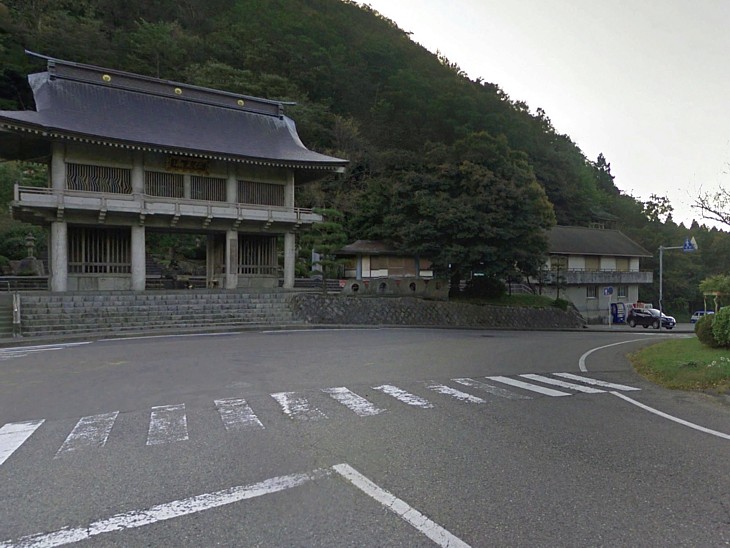 仁王門前を右に下ると左側にトイレ棟。胎内観音の境内は左の山裾で、7mを越える観音像を本尊とする。