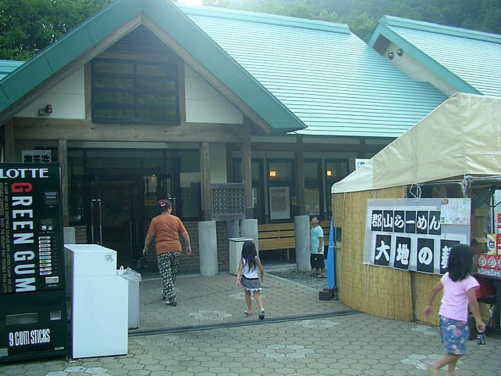 福島県の道の駅「たじま」 メイン駅舎の入口。休憩よりも物販に力を入れている駅だ。