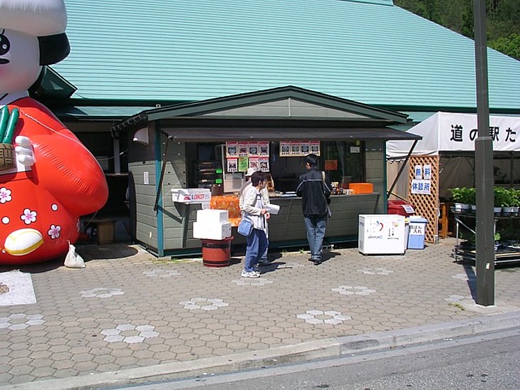 店頭の軽食屋台。敷地左に民営の食堂はあるが駅としては唯一の食事処で、テントの中にテーブルがある。