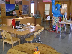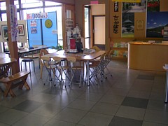 案内コーナーを兼ねた一角にテーブルが数台と椅子が置いてある。のんびり過ごせる程ではないが、まぁまぁのスペースだ。 | |