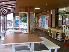 情報コーナーを兼ねたスペースあり、営業時間中は利用可能。他に10人程度は収容できる足湯あり。 |