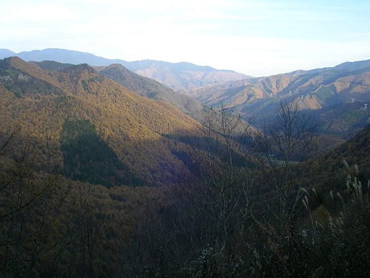 峠からは山並みに隠されて飛騨は見えない。「みね」の実家は野麦峠からはまだ80km以上離れている。