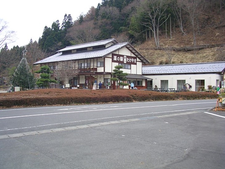 メイン駐車場から駅舎を。裏の平屋建てが何かは確認しなかったが多分加工施設だと思う。