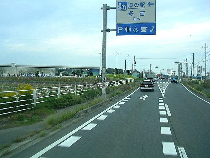 国道296号の西側・冨里方向から駅へ。総武本線の八日市場駅(国道126号)まで平坦な道が続く。