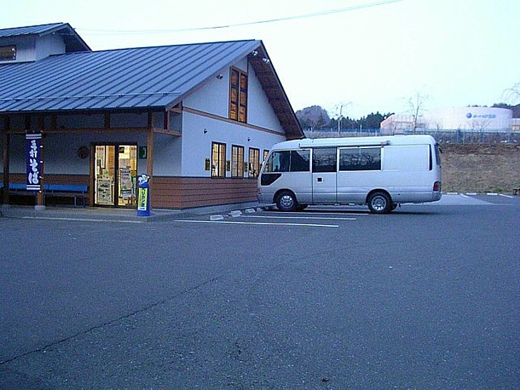 駅舎の右側ならP泊可能だが「ひらた」の方が良い。裏手に見えるのは場外舟券を扱うポートピア。
