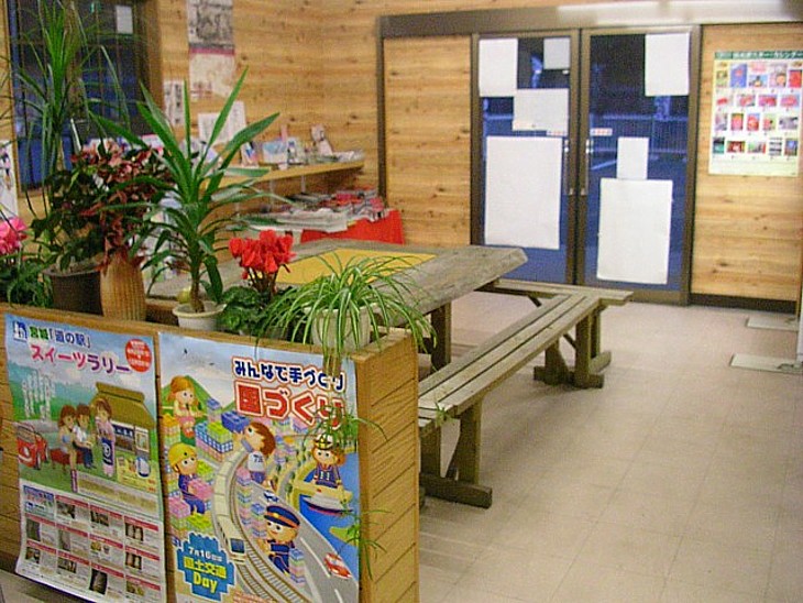 入口のすぐ前にはウッドテーブルが置かれて一応の休憩スペースを確保しているが、全体に狭い。