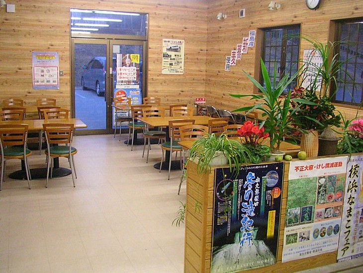 駅舎の右奥が食事処。手打ち蕎麦が売りだが、パートさんが片手間で調理する割に価格が高すぎる。