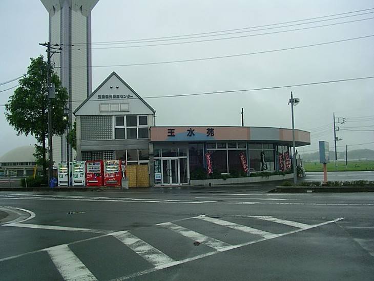親水公園側の食事処「玉水苑」。物産館を兼ねており、外見は見栄えしないが中身は悪くない。