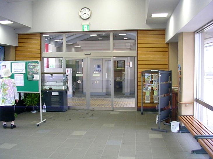 休憩所の利用は7時半から19時まで。通路を隔てて同じ棟の中にトイレがあるので使いやすい。