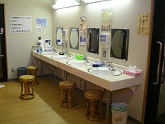 敷地の右隅に広い休憩施設とトイレが併設されている。窓が大きくで明るい雰囲気、スペースも十分で設備も整っている。 | |