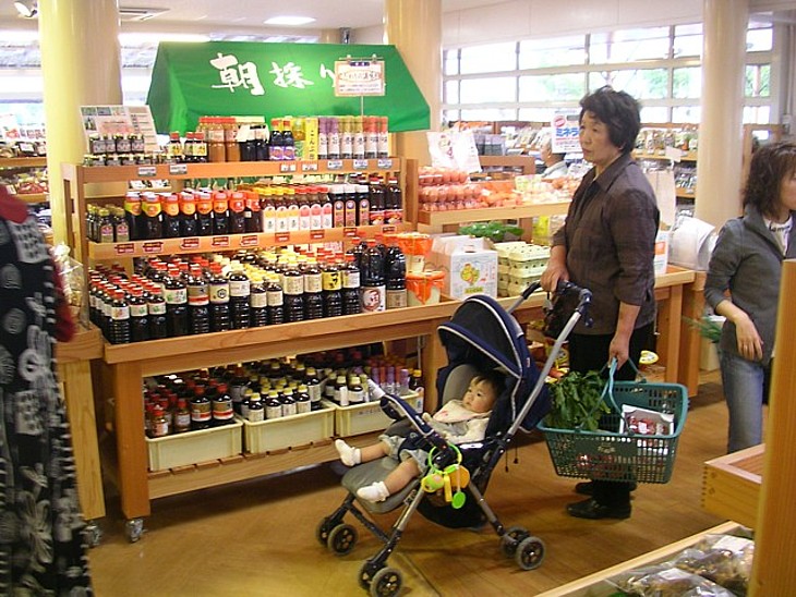地域の物産と産直野菜を扱う「朝採り館」では弁当や惣菜や漬物・地元産の米などを扱っている。