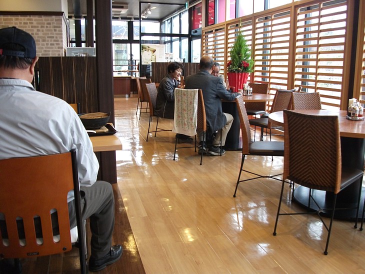 この食事処の雰囲気は悪くないね。混んでいてもテーブルや仕切りが適当に離れているし、明るくて静かだし。