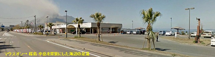 授乳室を併設した情報・休憩コーナーは10〜21時。10時〜日没まで利用できる無料足湯は全長50m以上、火の山・桜島が一望。 |
