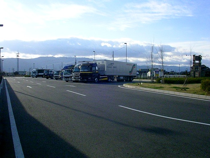 大型車駐車場は進入路の右側、広めに確保してある。プロ・ドライバーの休憩にも適した立地なのだろう。