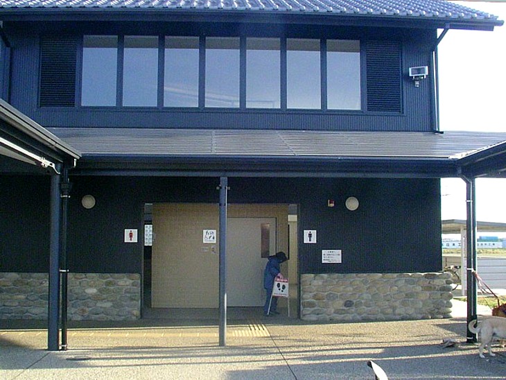 トイレは駅舎の右端に造られている。2005年10月の開駅で設備もまだ新しく、手入れも行き届いている。