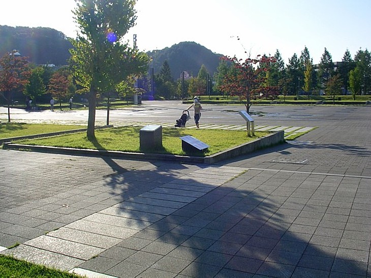 公園のメインは噴水広場、夏には子供たちの絶好の遊び場だ。我が家の犬どもは遊びを見るだけで入場禁止。