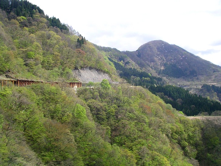 山腹を縫うように上流の利賀村中心部に向かう国道471号。8km先には更に