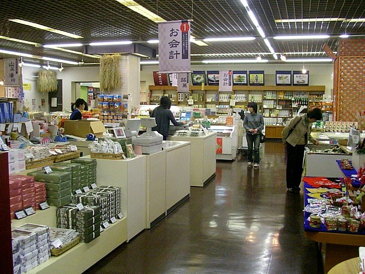 訪問当時の「クロス10」の食事処と土産物コーナーの画像。売店はかなり広い面積を占めている。