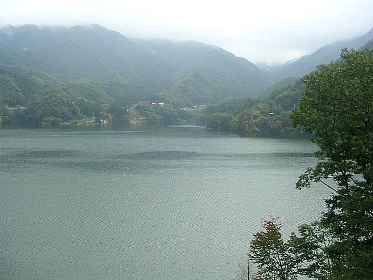 駐車場の横から湖畔に降りる遊歩道が設置されており、若葉の頃と紅葉の頃のどちらも楽しめる。