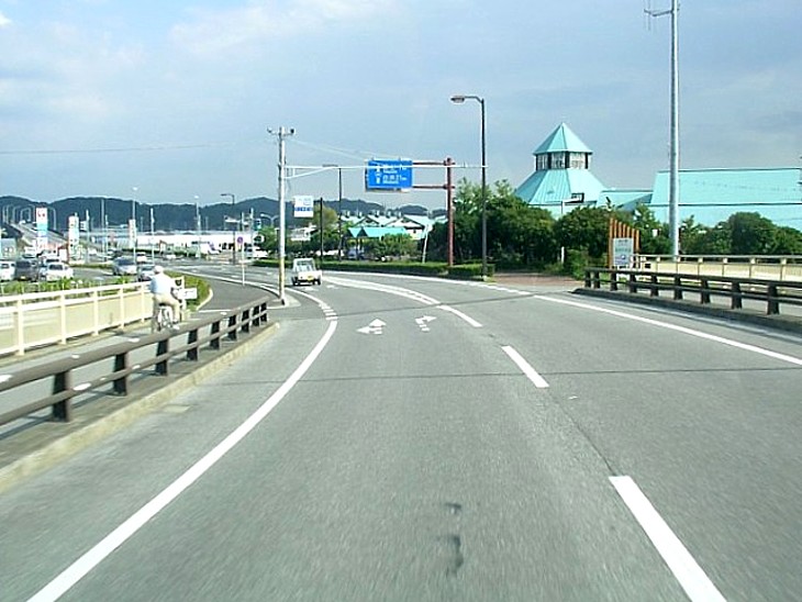 国道127号を北側から道の駅へ。橋の先右側が駅で、隣に土産物と食堂の「とみうらマート」がある。