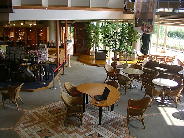 中二階からテラスに続く休憩スペースを。休日は混むが平日ならのんびり居眠りできそうな雰囲気だ。