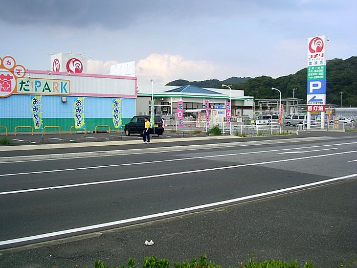 「猫だ!PARK」の横にはカラオケボックスやリサイクルショップ、ホームセンター、農産品の直売所など。