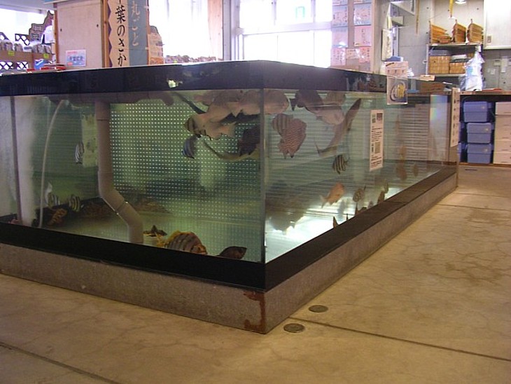 地元漁協直営の干物や鮮魚のコーナー。購入した魚を無料で捌いてくれるのはありがたい。