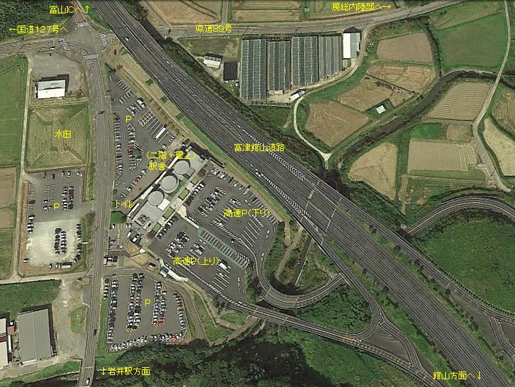 北西から見た道の駅。1階は売店、2階は施設の充実した道の駅+富津館山道のハイウェイ・オアシス。