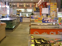 1階の物産コーナーは9〜18時(夏は20時)、面積も広く海産物も農産品も豊富に扱っている。価格は...やや安め程度か。 |