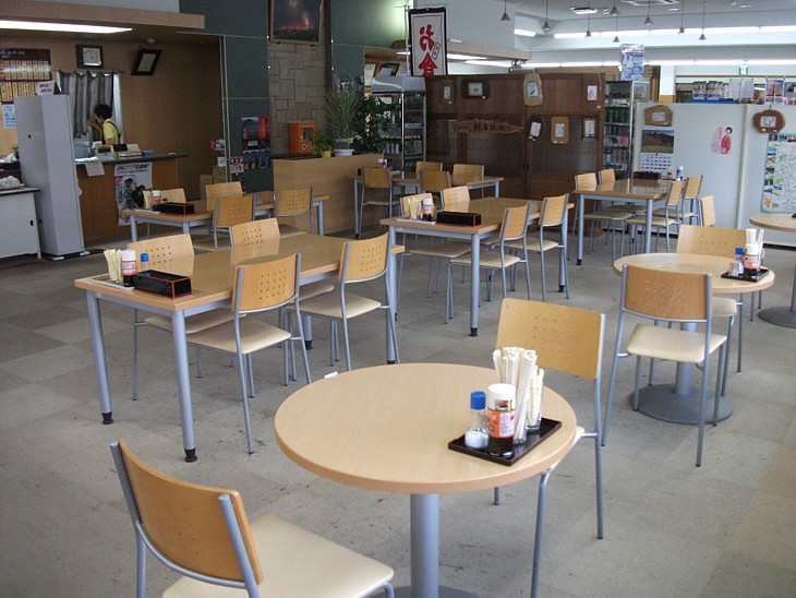 新装された食事処から売場の方向を。価格帯もメニューも中途半端で地域性も乏しく魅力に欠ける。