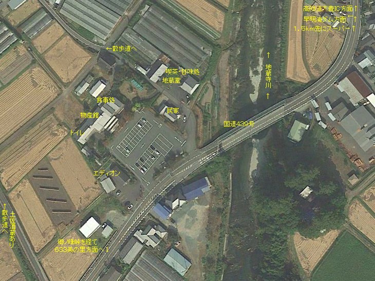 高知県北部の山裾を東西に走る国道439号、のんびりと過ごす静かな山里の雰囲気に満ちている。