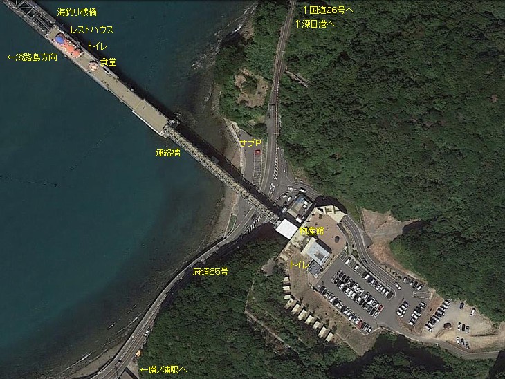 人気の高い海釣り公園(有料)を併設した道の駅。15km沖には淡路島、あと1kmで和歌山県に入る。