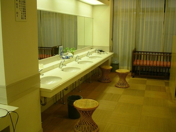 岩手県の道の駅 「東和」について。 浴場は全体に清潔で、脱衣場も良く整理され手入れも行き届いている。