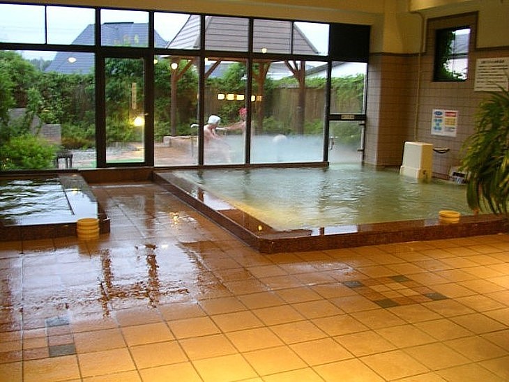 岩手県の道の駅 「東和」について。 浴室は石貼りで統一され、快適で使いやすい。