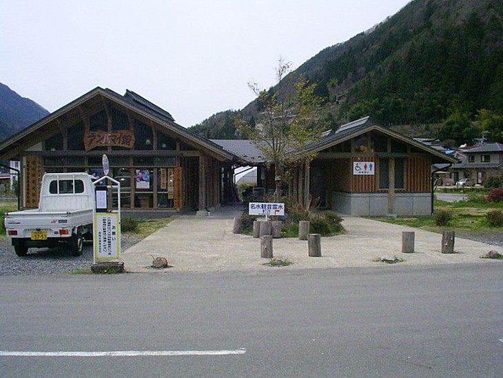 駐車場の右端に観光協会の案内所とトイレが建つ。