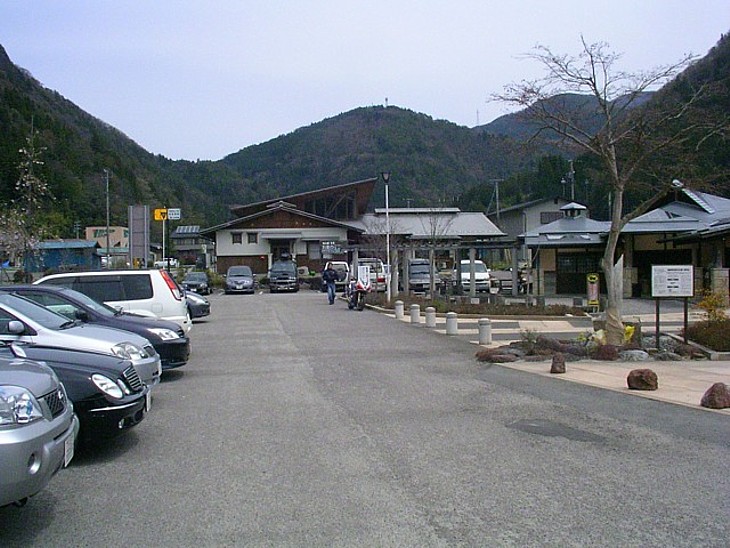 駐車場はゆったりと造られている。浜松市内から50km前後、浜松ナンバーの車輌が多い。