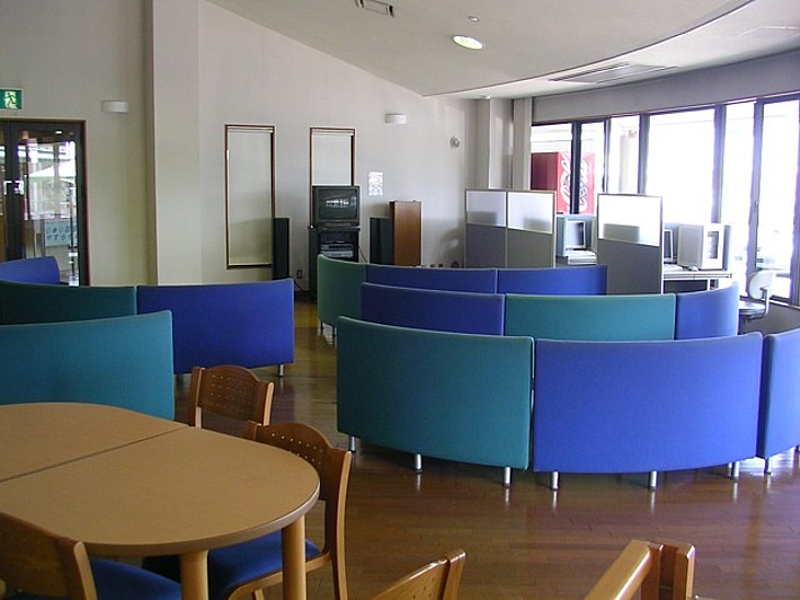 広い交流促進センター。片隅に置かれた数台のPCからはネット接続もできるが、利用者は少ない。