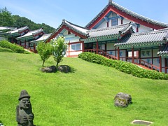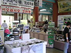 9〜18時・韓国の物産が豊富だが価格の基準が判らないが、たぶん安めだと思う。物産館では韓流スターのポスターやグッズも豊富に扱っている。国道沿いに産直野菜売場(8時半〜17時、無休。冬はムリか?)があり、ここは結構安い印象を受けた。 | |