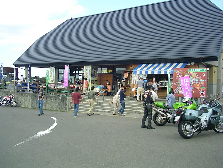 駅舎は駐車場から一段高い場所。左から軽食堂・物産館があり、石段を登った場所に軽食のカウンター。