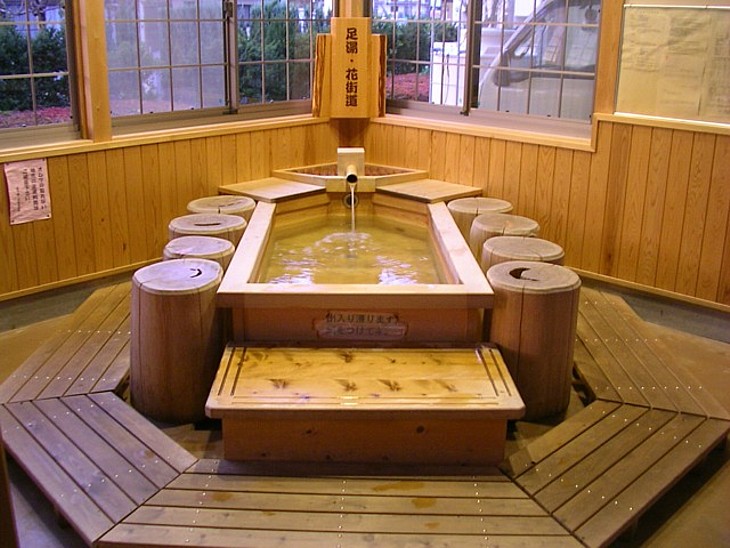 駐車場の右奥にある無料足湯は付知峡倉屋温泉からの引き湯、定休日以外の9時〜18時に利用できる。