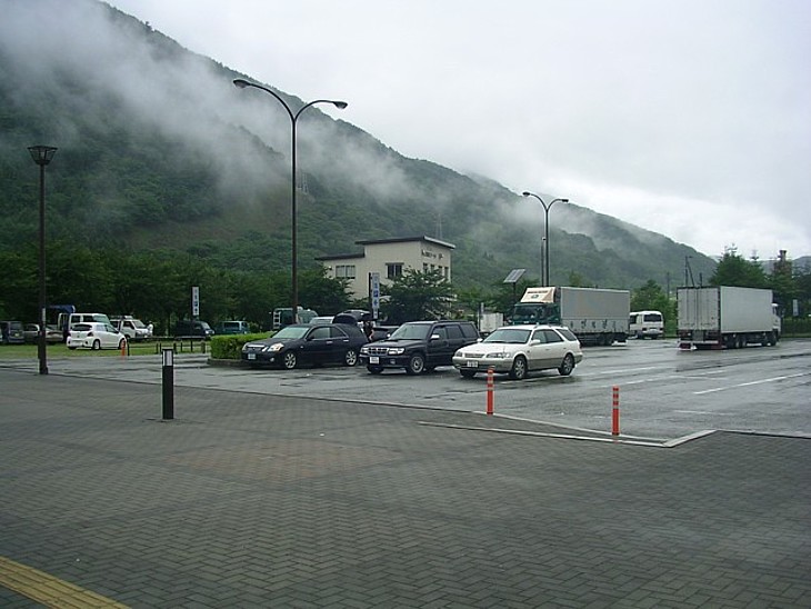 駅舎側には普通車・反対側には大型車、休日以外は圧倒的に大型トラックが多く、駅舎前を占拠するケースも。