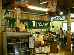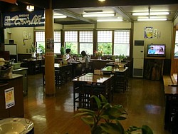 食事処が軽食を兼ねているが狭くて混むため落ち着かない。休日には屋外のアプローチ部分に屋台の飲食コーナーが出る。