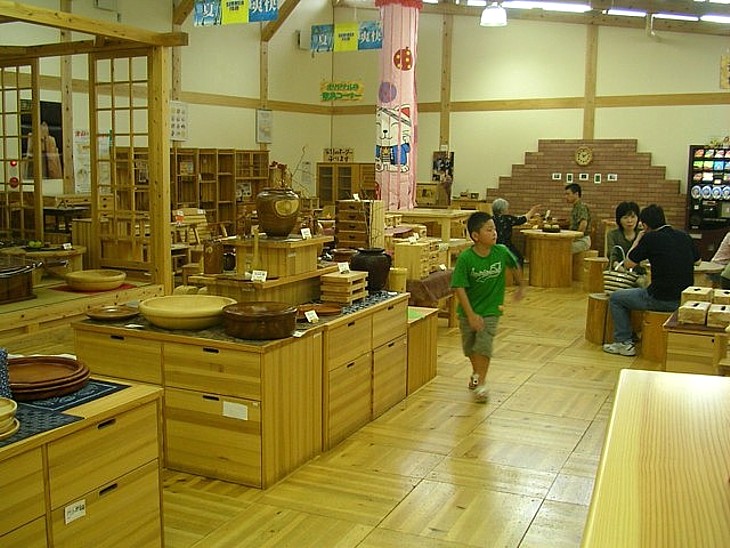 価格は安いとは言えないが木工品の種類はとても多い。奥には休憩施設も設けられている。