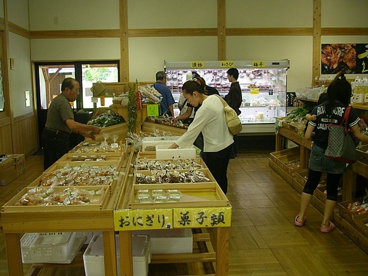 木工品の横には手作りのおにぎりや弁当・手作り惣菜・菓子などのコーナーが設けてある。