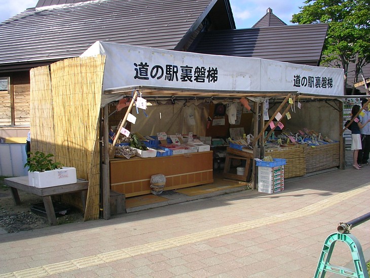 物産館と産直野菜と地元テナント棟の風景。夕方近くだったため野菜売場は品切れ間近、寂しい状態だった。
