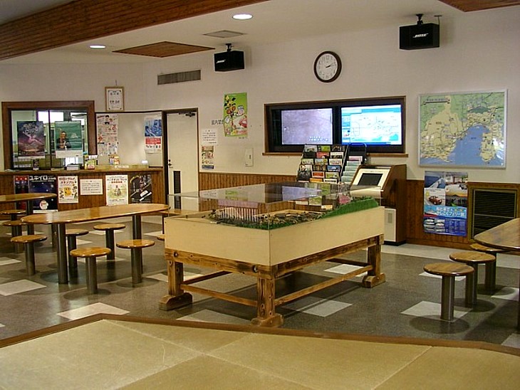休憩&インフォコーナーは広くて施設も充実している。事務所が隣接しているが概ね不在だ。