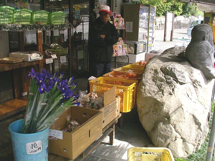 店頭にも地元の野菜類や加工品が並んでいる。この日は柑橘類やタケノコ・生花などが安かった。